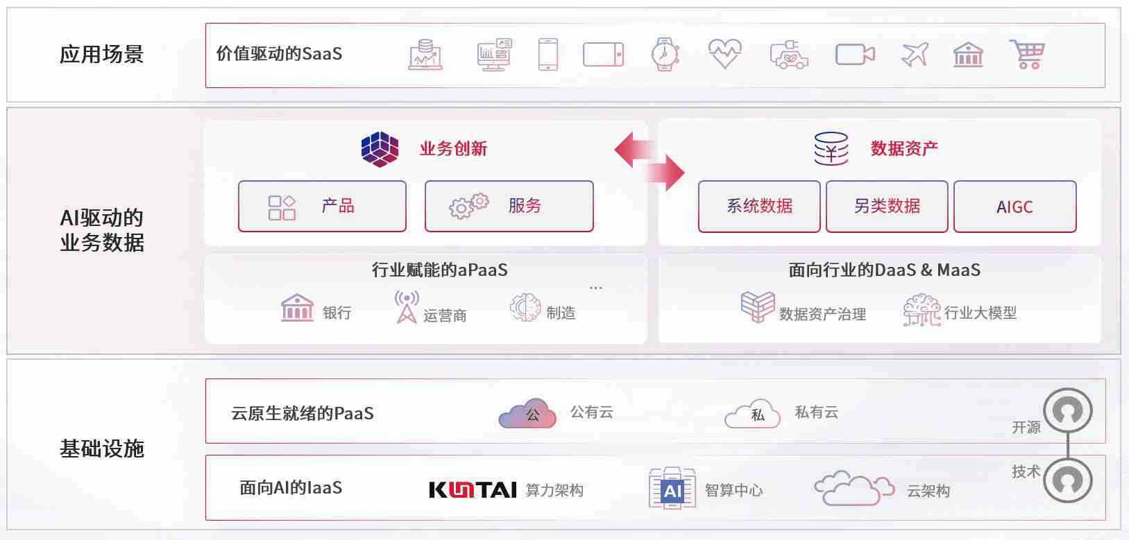 数字时代,,,围绕企业数字化转型的关键要素,,KOO钱包数码开创性的提出数云融合战略和技术体系框架,,,着力在云原生、、、、数字原生、、、AI原生和信创产业上架构产品和服务能力,,,,为处在不同数字化转型阶段的快消零售、、汽车、、、金融、、、、医疗、、政企、、教育、、运营商等行业客户提供泛在的敏捷IT能力和融合的数据驱动能力,,,,构建跨界融合创新的数字业务场景和新业务模式,,,,助力企业级客户建立面向未来的核心能力和竞争优势,,,,全面推动社会的数字化、、、、智能化转型升级。。。。